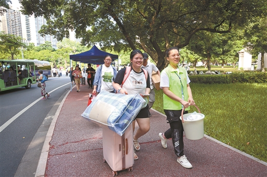 志愿者幫助新生搬運行李。