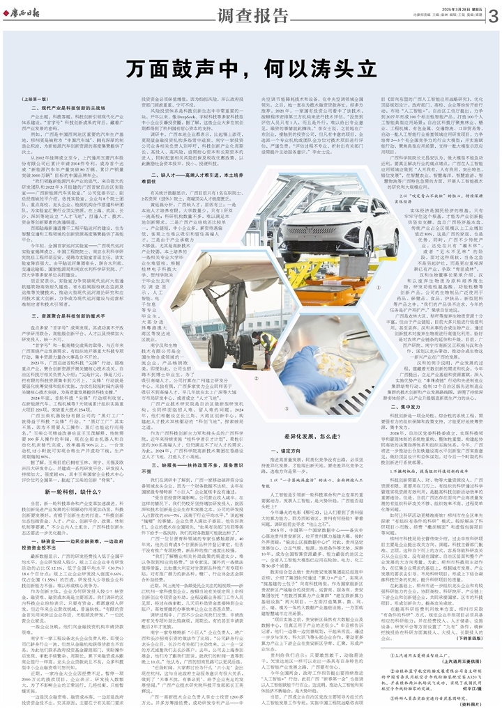 當前,八桂大地上,新能源汽車、新材料、新能源等新產業、新業態加速崛起;與此同時,創新生態、成果轉化、要素集聚等環節的現實瓶頸也愈發凸顯。如何抓住新一輪科技革命和產業變革機遇?如何將區位優勢轉化為創新勝勢?廣西云-廣西日報調研組深入區內外產學研一線,探究創新鏈與產業鏈無縫對接之道,解鎖“實驗室”到“生產線”的轉化密碼。