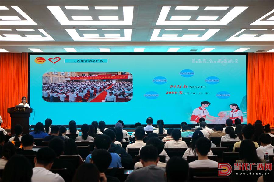 西部計(jì)劃廣西項(xiàng)目辦的項(xiàng)目專員向?qū)W子們解讀政策。記者 徐云潔 攝